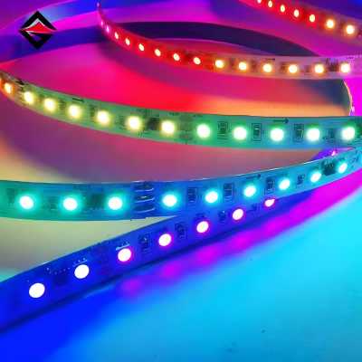 Světelný pás RGB je lehký pás, který používá červené, zelené a modré LED lampy, které mohou vytvářet různé barvy a efekty úpravou jasu těchto barev. RGB proužky mění barvu z barvy na barvu, jsou velmi flexibilní a lze je použít k vytvoření teplé atmosféry, živé atmosféry nebo dokonce uklidňujícího prostředí. Oni se běžně používají v situacích, jako je domácí dekorace, komerční displeje a jevištní představení.